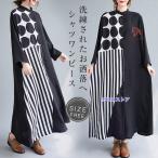 シャツワンピース 長袖 レディース 秋 冬 ロングシャツワンピース 大きいサイズ ロングワンピ ドット 水玉 ストライプ ゆったり 体型カバー ミモレ丈カジュアル