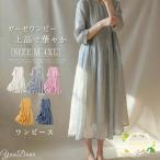 ワンピース ガーゼワンピース レディース ロングワンピース 半袖 七分袖 シンプル 秋 春 夏 大きいサイズ ロング丈 体型カバー 無地 きれいめ プルオーバー