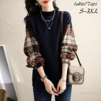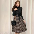 ワンピース レディース ニットワンピース ロング丈 切り替え チェック柄 きれいめ 秋 冬 着痩せ 異素材 お洒落 通勤 体型カバーケーブル編み