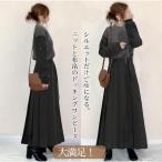 ワンピース レディース ニットワンピース ロング丈 切り替え セットアップ風 きれいめ 秋 冬 着痩せ 異素材 お洒落 通勤 体型カバー