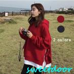 パーカー 秋冬 ゆったり 大きめ 秋 レディース トップス 体型カバー 裏起毛 フーディー おしゃれ フード付き 赤