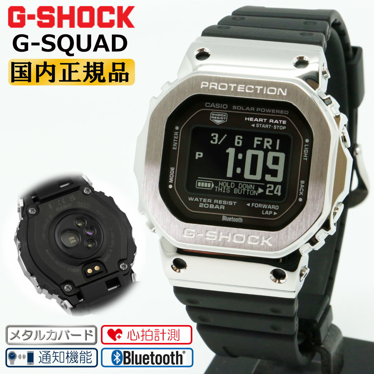 G-SHOCK G-SQUAD メタルカバード GM-H5600-1JR シルバー&ブラック カシオ Gショック Gスクワッド スマートウォッチ スマートフォンリンク 通知機能 ハートレートモニター ソーラーアシスト充電 黒 銀色 腕時計 (GMH56001JR)【CA-M2】 [在庫あり]
