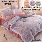 チェック柄 布団カバー シングル 3点セット 北欧 抗菌防臭 掛布団カバー まくらカバー 姫系 肌に優しい フリル付き ベッドカバー フラットシーツ 寝具カバー