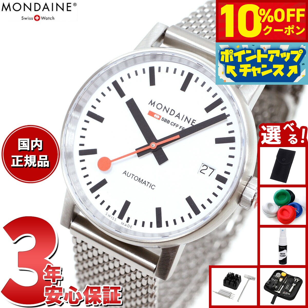 【10%OFFクーポン!&店内ポイント最大46倍!12月1日!】【選べるノベルティー付き】モンディーン MONDAINE 自動巻き 腕時計 レディース エヴォ2 オートマティック 35mm メッシュブレスレット evo2 MSE.35610.SM