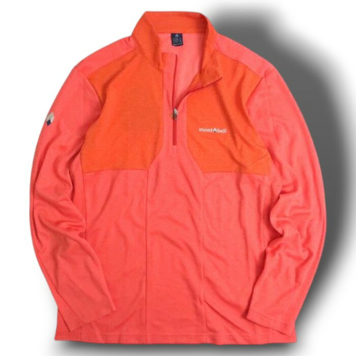 mont-bell モンベル Scafe 吸水速乾 UVプロテクト 消臭 ハーフジップ 切替 裏地メッシュ 長袖 カットソー ロンT F16S-203 登山 トレッキング コーラル M-01 L-02 XL-03▲019▼00731k01