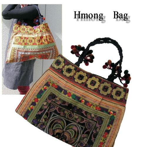 【宅配便送料無料】モン族 ショルダーバッグ 巾着バッグ トートバッグ[エスニック バッグ] バード刺繍