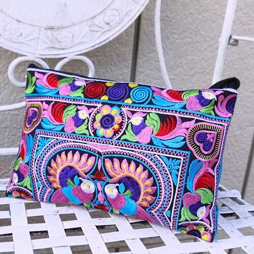 【メール便可】モン族 バード刺繍 長方形 バッグ ポーチ 深め