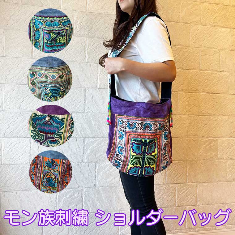 モン族刺繍 モン族バッグ バッグ ショルダーバッグ レディース カジュアル アジアン雑貨 アジアンファッション 幅広ショルダー 通学 通勤 プレゼント 個性的