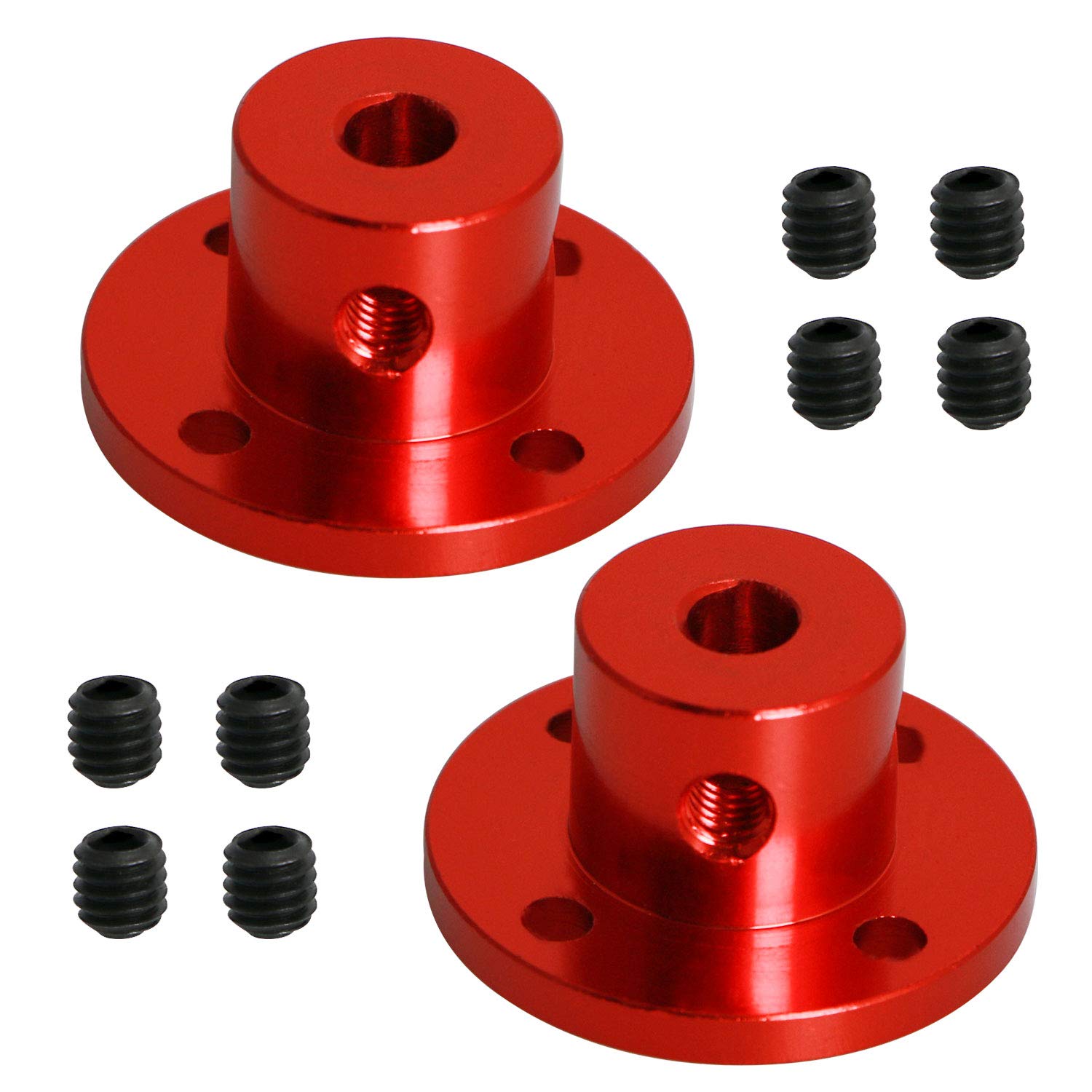 リジッドフランジカップリング モーターガイドシャフトカプラー モーターコネクタ 内径5 mm H15xD15 レッド 4個