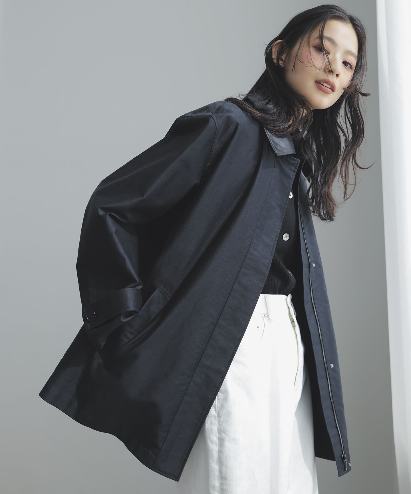 ICB L(アイシービー エル)/【配色襟取り外し可能】ライトモールスキン キルトライナー付きステンカラーコート