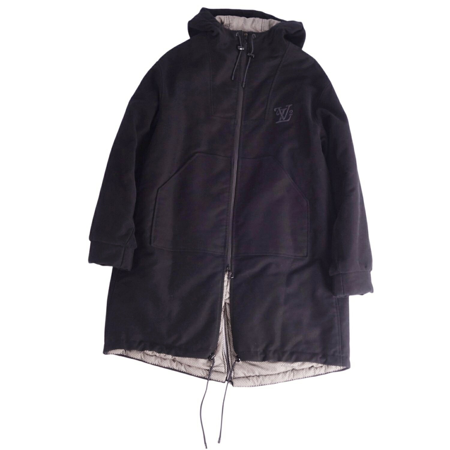 【極美品】ルイヴィトン LOUIS VUITTON NIGO 20AW コート エンブロイダリー LVパデットモールスキンパーカー モッズコート フィッシュテールパーカー 中綿入り ロゴ刺繍 アウター メンズ 48(M相当) ブラック【中古】