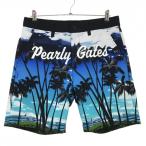 【新品】パーリーゲイツ ハーフパンツ ライトブルー×黒 ヤシの木 ロゴ メンズ 5(L) ゴルフウェア PEARLY GATES