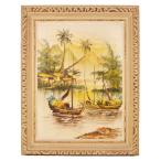南国 ボート 港 ヤシの木 バリ 船 油彩 ヴィンテージ アンティーク 風景画 額縁 サイン入り