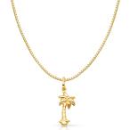 【並行輸入品】Ioka 14K イエローゴールド ヤシの木 チャームペンダント 0.8mm ボックスチェーンネックレス付き ストーン 金属