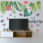 ウォールステッカー おしゃれ 植物 海 花 木 南国 ヤシの木 カフェ リーフ モダン グリーン モンステラ トロピカル ヤシの葉 ハワイ 蝶 高級感 カラフル vr01868
