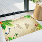 ウォールステッカー 砂浜 ビーチ 足跡 ヤシの葉 床用 インテリアシール 海 ヒトデ 貝殻 ハワイ
