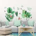 ウォールステッカー モンステラ おしゃれ W47 南国 花 ヤシの葉 木 カフェ 夏 背景 ビーチ グリーン 屋内植物 リビングルーム壁紙シール 約30cm×90cm2枚