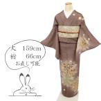 上質 訪問着 ヤツデに菊唐草 背紋有 ちりめん地 袷正絹着物 Lサイズ 身丈166.5cm 裄丈68.5cm レディース 和装 HC11-3 中古 リサイクル