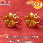 24金 ピアス ペア 純金 k24 24k キャッチのいらないピアス プルメリア イエローゴールドk18 18k 18金 ゴールド キャッチナッシャー 送料無料 セール 爆買