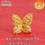 24金 ピアス 純金 イエローダイヤモンド 片耳ピアス 蝶々 キャッチのいらないピアス イエローゴールドk18 18金 キャッチナッシャー 蝶 送料無料 爆買