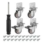 PATIKIL L字型プレートスイベルキャスターホイールコンボ1.25\" 4個セット ブレーキ付きベアリングスクリュー付き ブラウン色