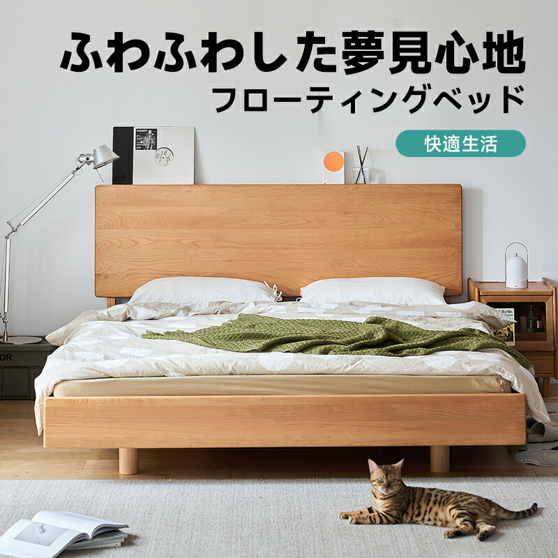【全商品3%OFF】 CAGUUU ユニット式木製ベッド 北欧デザイン 木製フローティングベッド シンプル モダンスタイル ヘッドボード収納スペース付き 組み立て簡単 ナチュラルなインテリア家具