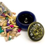 COOLPIPIT 香炉/お香セット アンティーク おしゃれ 陶器 ヨガ インテリア 渦巻き/線香/コーン型対応 線香立て 不燃布 コーン混合200個入り 4点セット (ブルー)