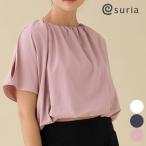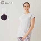 スリア suria ヨガウェア トップス カップ付き 半袖 ヨガ ピラティス ヨガウェア レジーヌトップ su-b524 スポーツ ウェア おしゃれ 上品 無地 ギャザー レディ