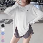 ヨガウェア トップス 長袖 レディース シアー ラウンドネック ピラティスウェア プルオーバー ゆったり 薄手 無地 黒 白 春 夏 秋