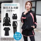 スポーツウェア フィットネス 4点セット レディース 春 秋冬 大きいサイズ トレーニングウェア ランニング ジム ヨガ 筋トレ 上下セット 吸汗速乾 体型カバー