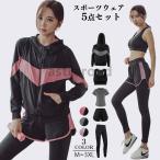 ヨガウェア 5点セット パンツ レギンス ブラ パーカー ジム フィット 通気 トレニング スポーツウェア 上下