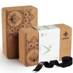 【並行輸入品】Overmont (オーバーモント) コルクヨガブロック 2個パック 8フィートストラップセット 天然コルクヨガブリック 高密度で