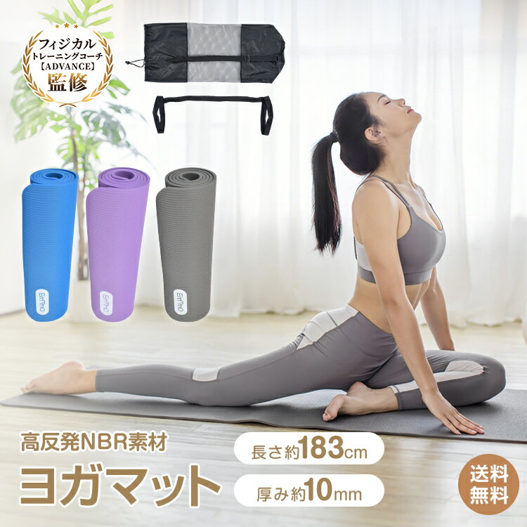 *限定10%OFFクーポン*【送料無料】ヨガマットセット 10mm 厚手 高反発 NBR ロング 大判 滑り止め トレーニングマット マットピラティス エクササイズ ピラティス ストレッチ 筋トレ 宅トレ フィットネス 防音 クッション 収納ケース付き バンド 初心者 持ち運び de178