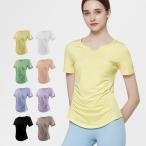 ヨガウェアレディース スリット入りラグランスリーブフィットネストップス 半袖「トレーニングウェア/ジムウェア/ピラティスウェア」