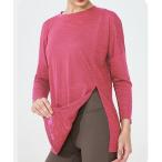レディース 長袖サイドギャザーラウンドヘムリブヨガトップスピラティスウェア レディース