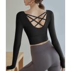 レディース 長袖クロップド丈クロスデザインヨガウェアトップス ピラティスウェア レディース