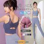 ヨガウェア セット 体型カバー 上下セット レディース セットアップ スポーツブラ パッド付き ヨガパンツ レギンス フィットネス パンツ ストレッチ 美脚