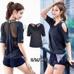 ヨガウェア レディース トップス おしゃれ ホットヨガ カットソー 半袖 メッシュ 透かし オフショル ストレッチ スポーツウエア