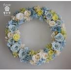 プリザーブドフラワーリース 水色・白・淡い緑のバラ アジサイとライスフラワー さわやかな色合い ギフト プレゼント 誕生日