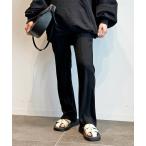 スラックス パンツ ミッドライズ フレア ストレッチ ウールブレンドパンツ レディース
