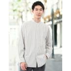 シャツ 「綿100% ゆったり」タイプライター バンドカラー長袖シャツ メンズ