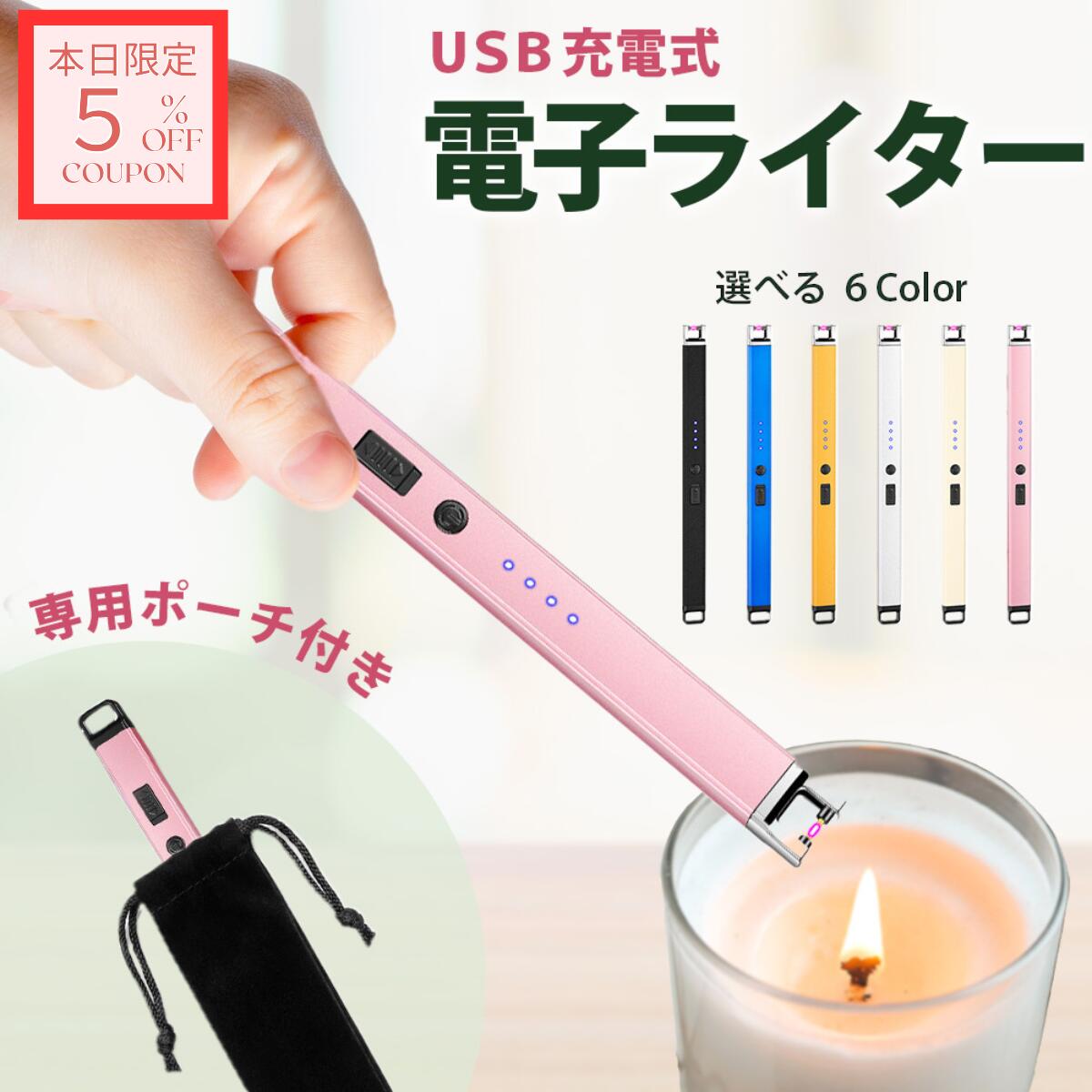 ★本日限定★5%OFF【収納袋付き】 電子ライター 充電式 USB プラズマ 風に強い 安全ロック付き 仏壇 線香 キャンプ おしゃれ BBQに ガス不要 ライター 高齢者 点火棒 アウトドア 災害用 プレゼント ギフト 送料無料