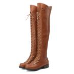 【並行輸入品】[CRETUAO] 女性のニーハイブーツフラットクロスレースアップレザーライダーブーツクラシックラウンドトゥチャンキーヒールパーテ