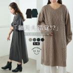 大きいサイズ レディース ワンピース Iライン でスッキリ着痩せ 丈が選べる ケーブル編み ニットワンピ ワンピ LL 3L 4L 5L 6L 長袖 秋 秋物 秋服 A