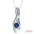 サファイヤ ネックレス 1.012カラット 18金ホワイトゴールド K18WG パールが弾む縦ライン /青(ブルー)/セレクトブランド・新品/届10/1点もの