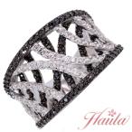 ブラックダイヤモンド リング/指輪 0.730カラット 18金ホワイトゴールド K18WG 幅広 二重層のモノトーンライン セレクトジュエリー・新品/届10/