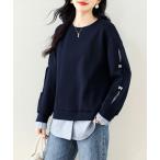 トレーナー スウェット リボン付き袖ラインレイヤード風スウェット レディース
