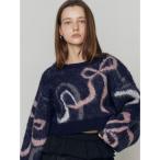 ニット セーター MARY QUANT × PUBLUX/マリークワント フラワーモチーフ 袖ライン スウェットライクニット 限定展開 レディース