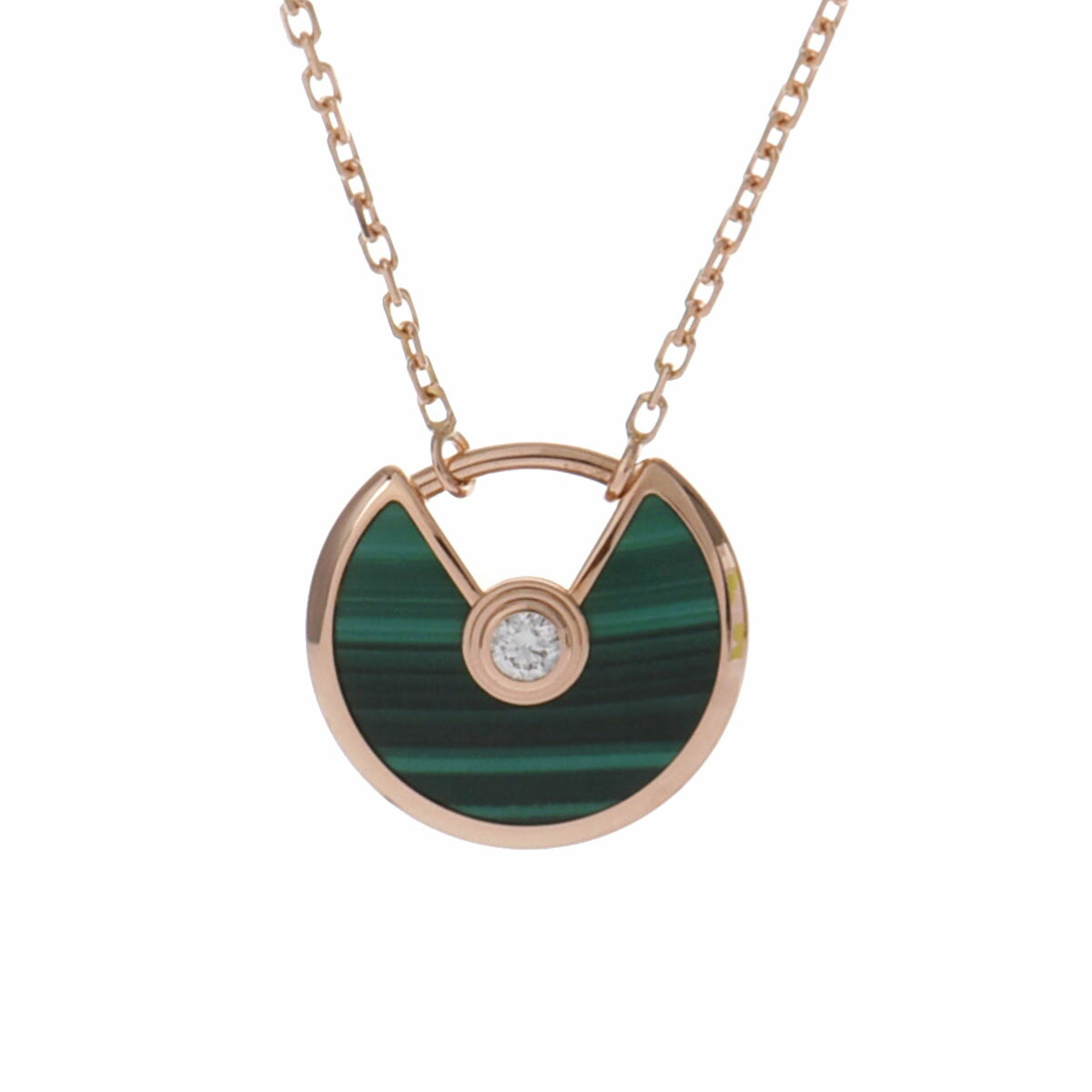 カルティエ CARTIER アミュレット ネックレス XS K18ピンクゴールド PG マラカイト/ダイヤモンド レディース ネックレス カルティエ 【ローン48回払い無金利】【中古】