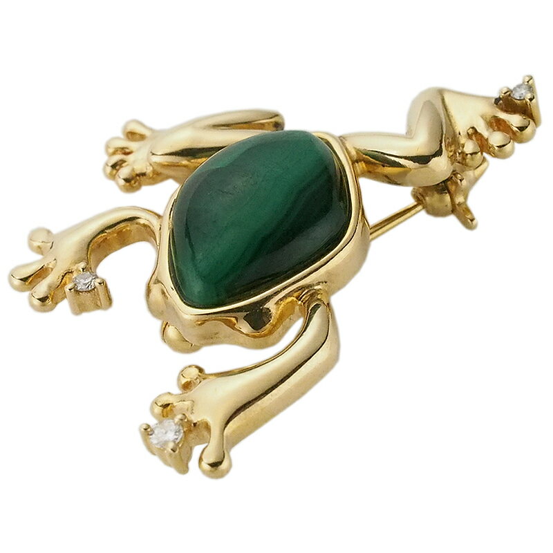 音羽屋■ タサキ TASAKI マラカイト/ダイヤ付K18YG イエローゴールド ブローチ 鑑別カード付き 仕上済【中古】
